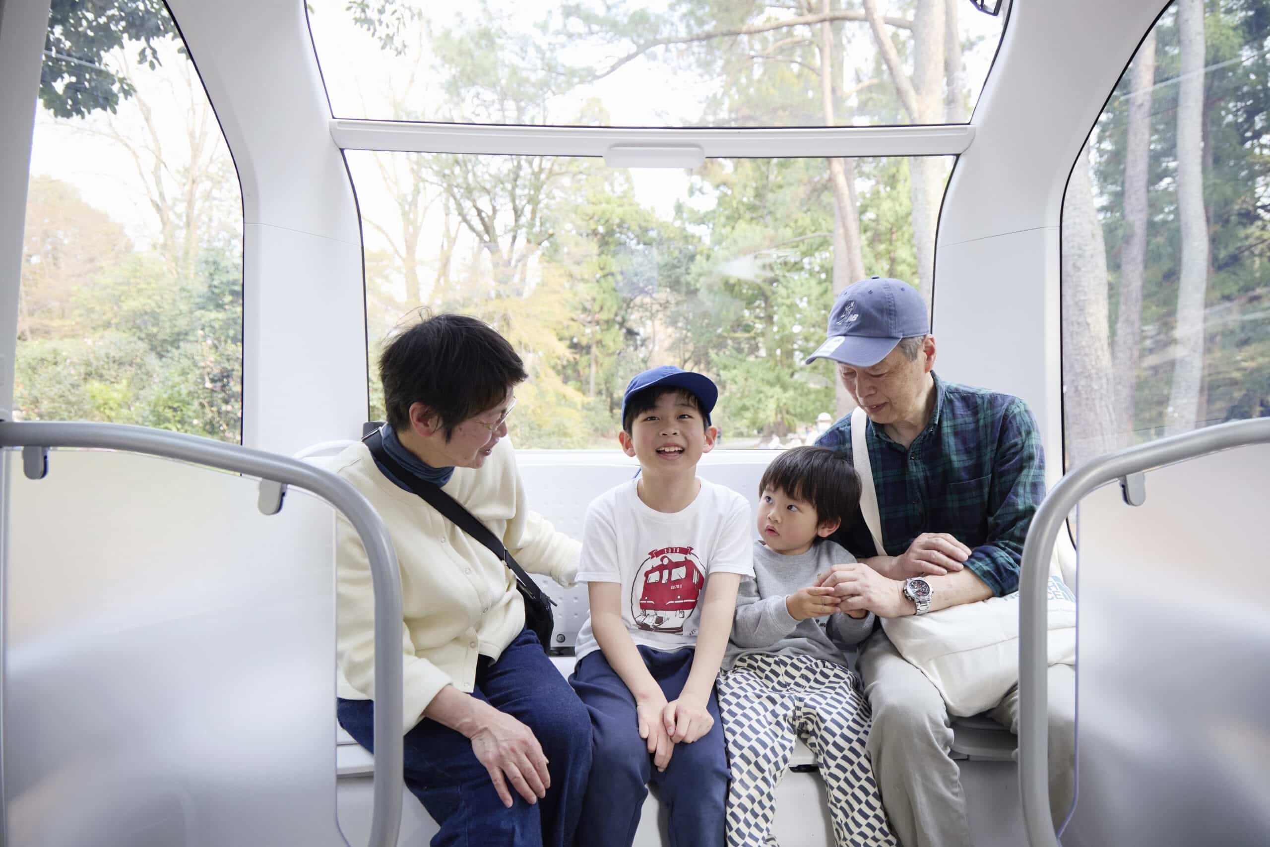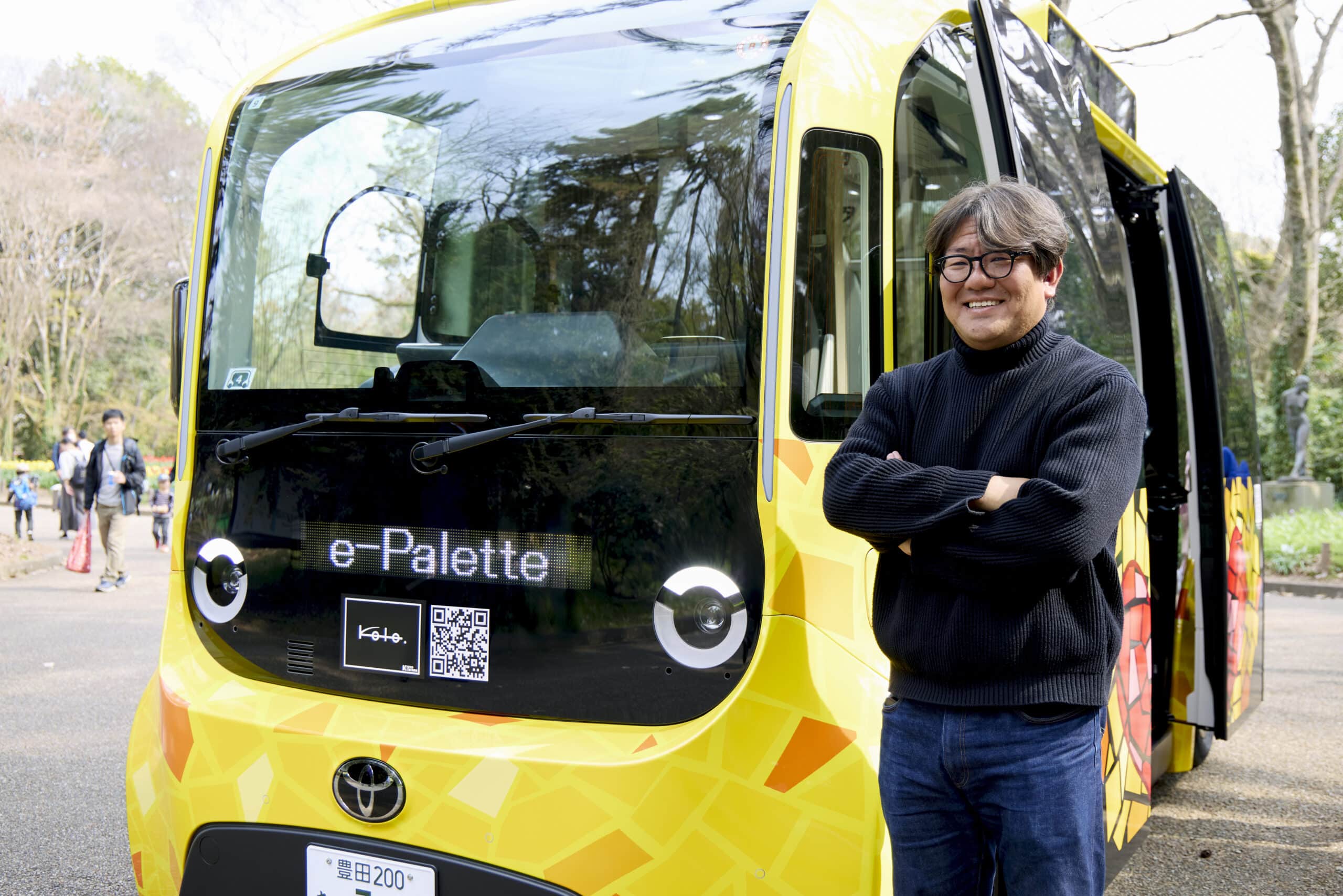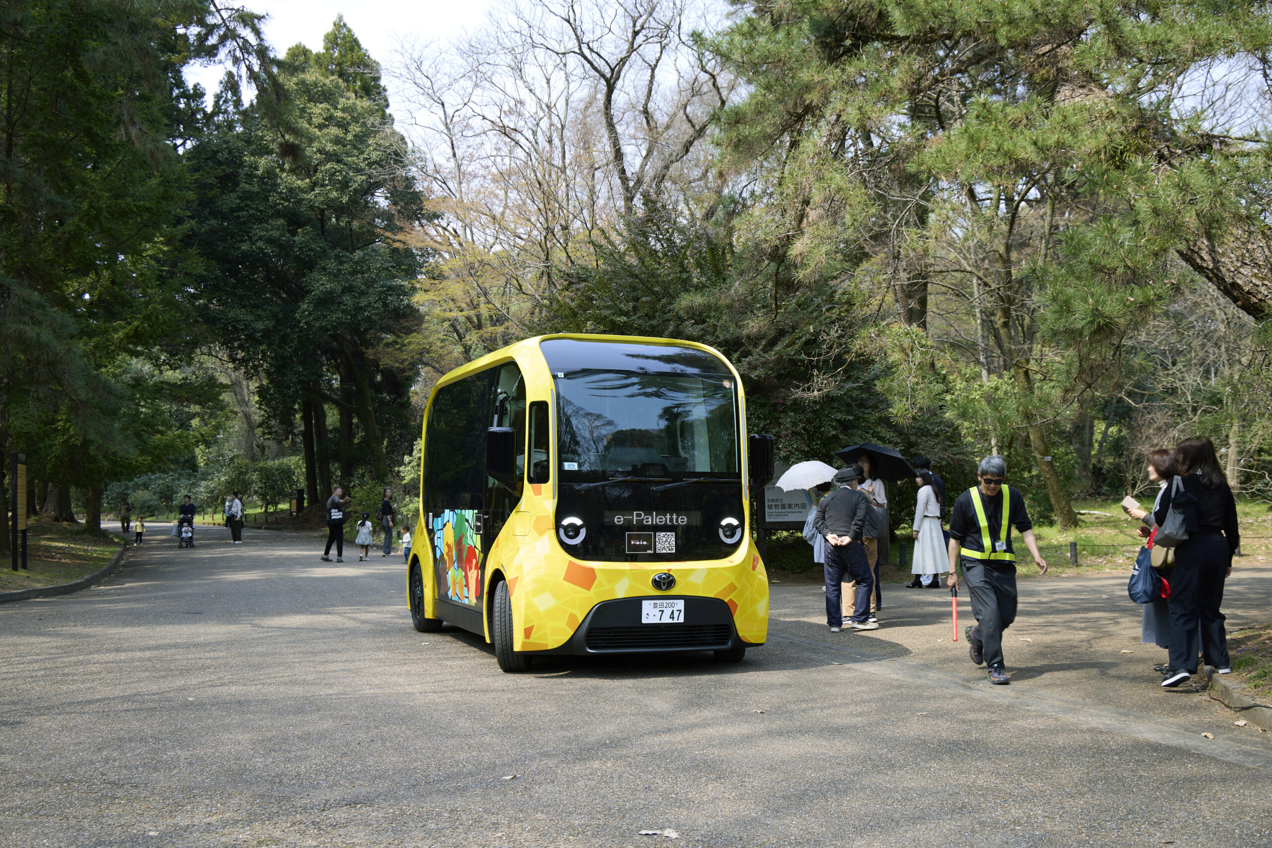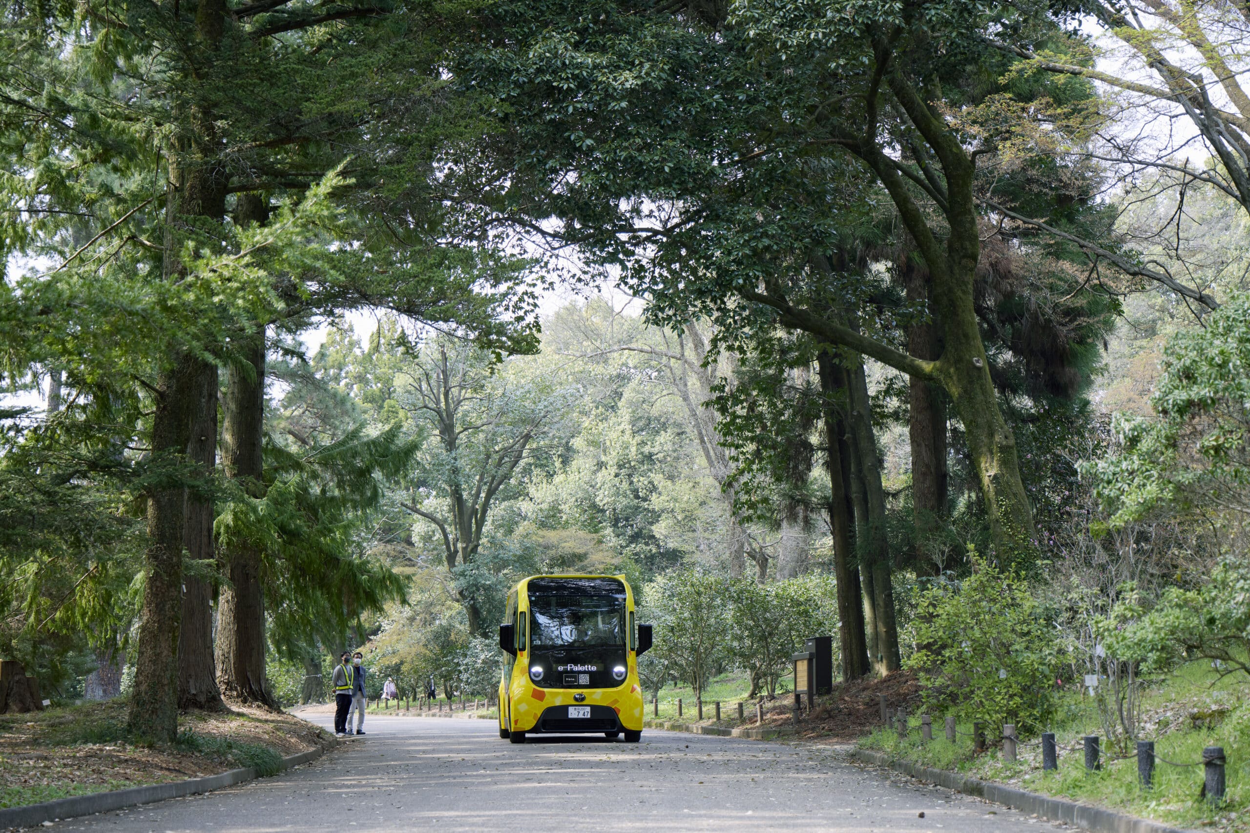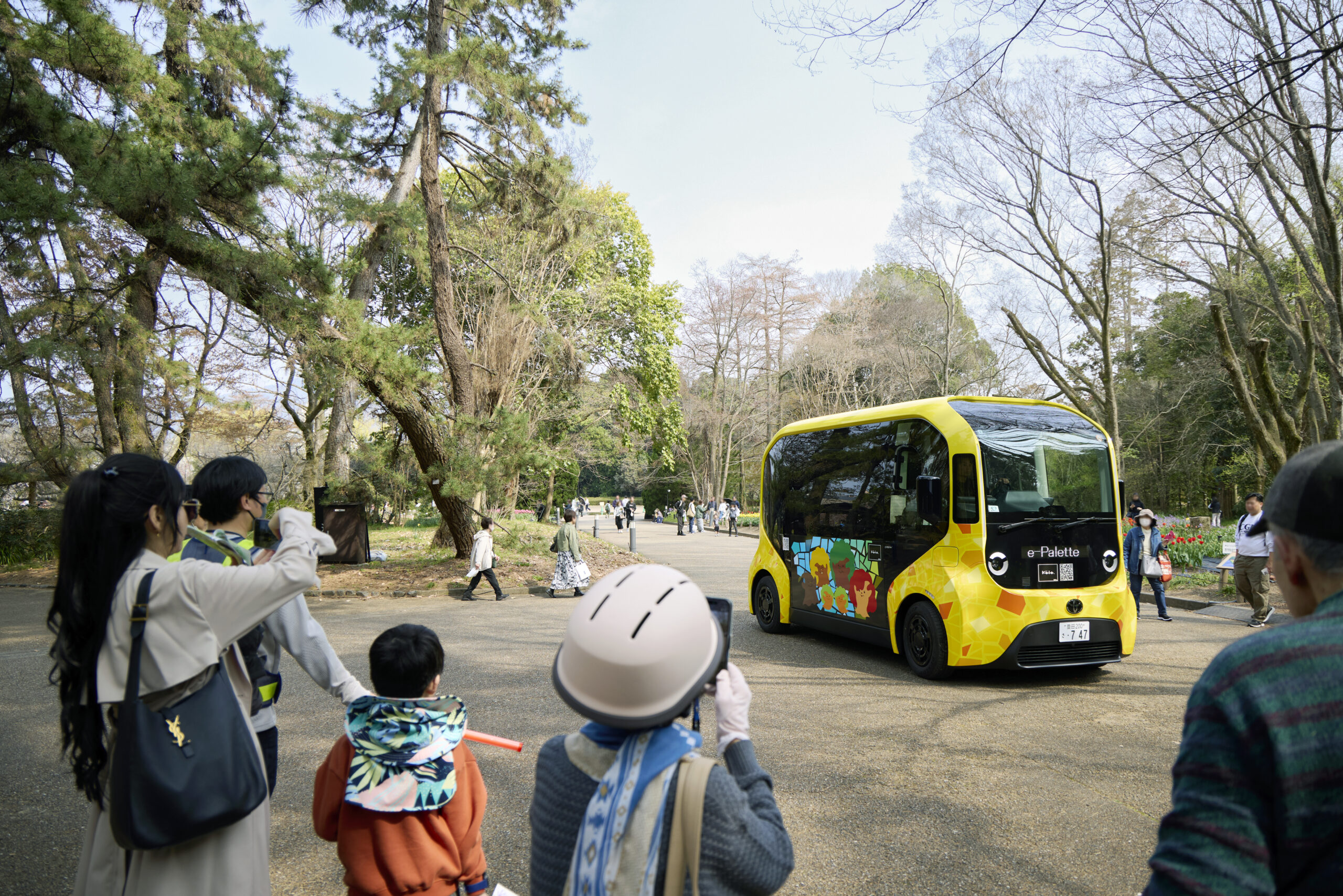 この日、広い植物園の中で目を引いていた、黄色い車体のe-Palette。「かわいい!」「乗ってみたい!」と、たくさんの人たちがカメラを向けていました。ファミリーを乗せたe-Paletteは園内をゆっくりと走行。大きな窓からは春爛漫の景色を眺めることができました。