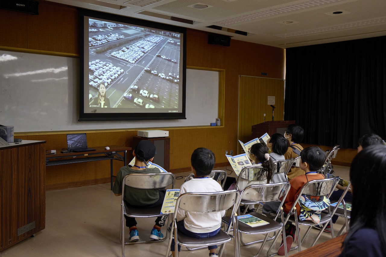 トヨタ自動車九州のスタッフによるクイズ形式の問いかけに、子どもたちが元気に手を挙げて答える姿が印象的です。会場は終始、笑顔に包まれ、春の陽気にぴったりな和やかな空気が流れました。