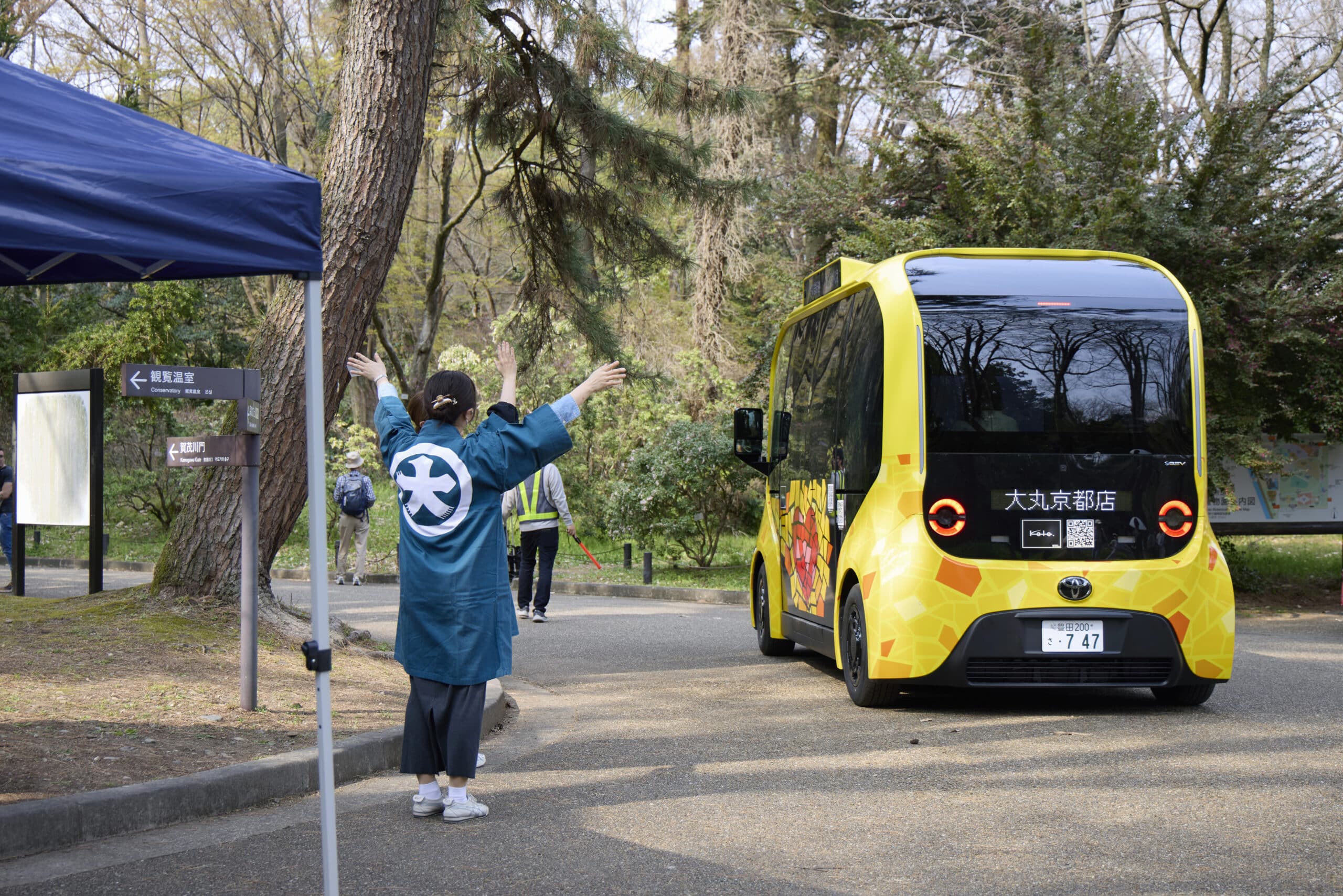 桜が咲き始めた3月28日に京都府立植物園で行われたのが、大丸京都店による親子向けプログラム「だいまるきょうとっこがくえん 開園7周年記念プログラム」です。内容はe-Paletteの試乗とトヨタ自動車九州・宮田工場のオンライン工場見学。予約はすぐに満席になり、ファミリー40組が体験に参加しました。