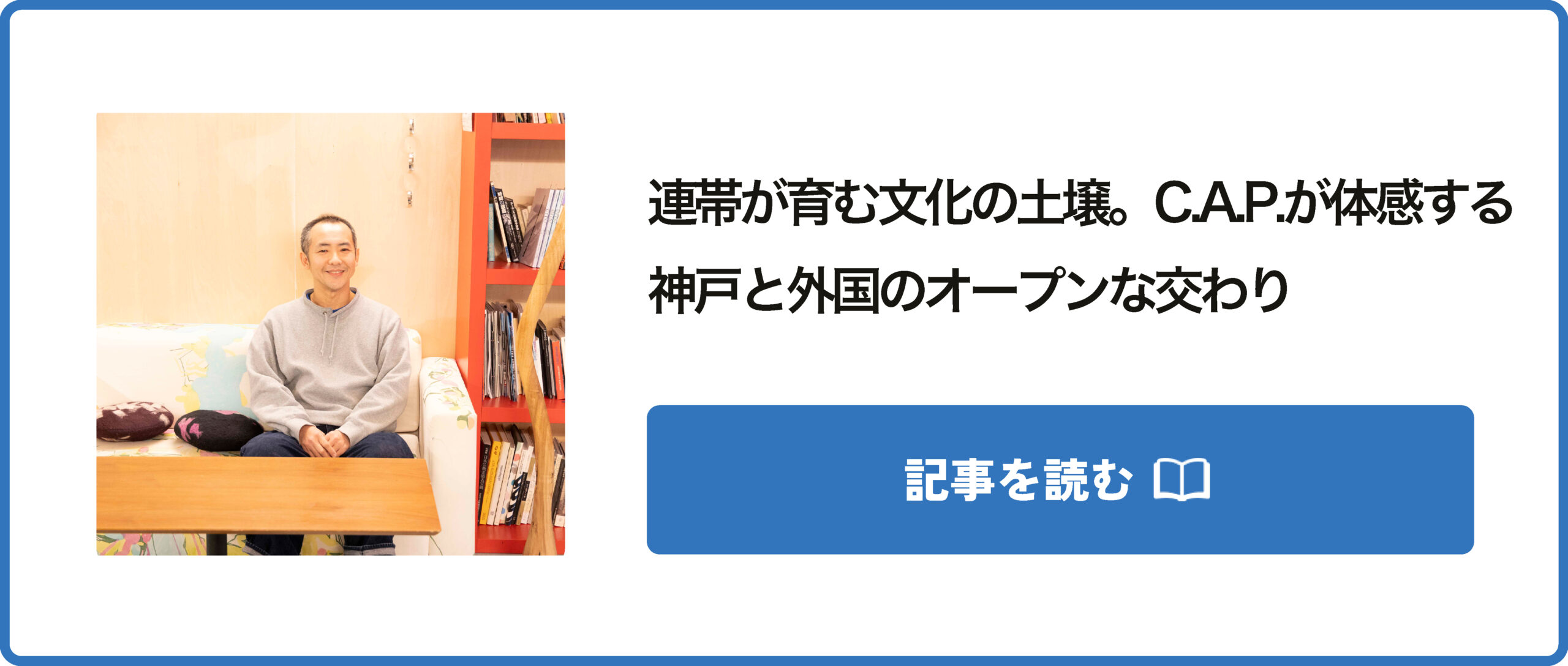 「C.A.P.(芸術と計画会議)」は、1995年の阪神・淡路大震災の直後、フランスのアーティストたちからの連帯の呼びかけに応答した活動。目的を持たず、ただ面白いと思うことを実験し続ける。30年以上にわたる活動から見えてくるのは、神戸という港町が持つ文化的な開放性と、“扉を常に開けている”という姿勢が生み出す豊かな交流でした。