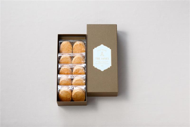 徳島県徳島市のパティスリー・アグネス ペストリー ブティック。「地域の皆さまにおいしいものを届けたい」という思いで、地元のテロワールと向き合い、徳島の特産品や季節の果実を使ったスイーツが生み出されています。本商品は香り高いアーモンドパウダーと貴重な阿波和三盆糖が入ったメレンゲ生地で、阿波和三盆糖の糖蜜風味のバタークリームを挟んだ商品です。