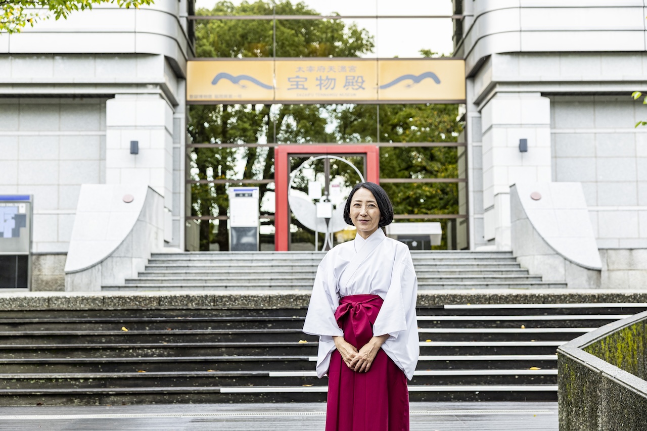 太宰府天満宮文化研究所に所属する学芸員のアンダーソン依里さん。太宰府市出身。