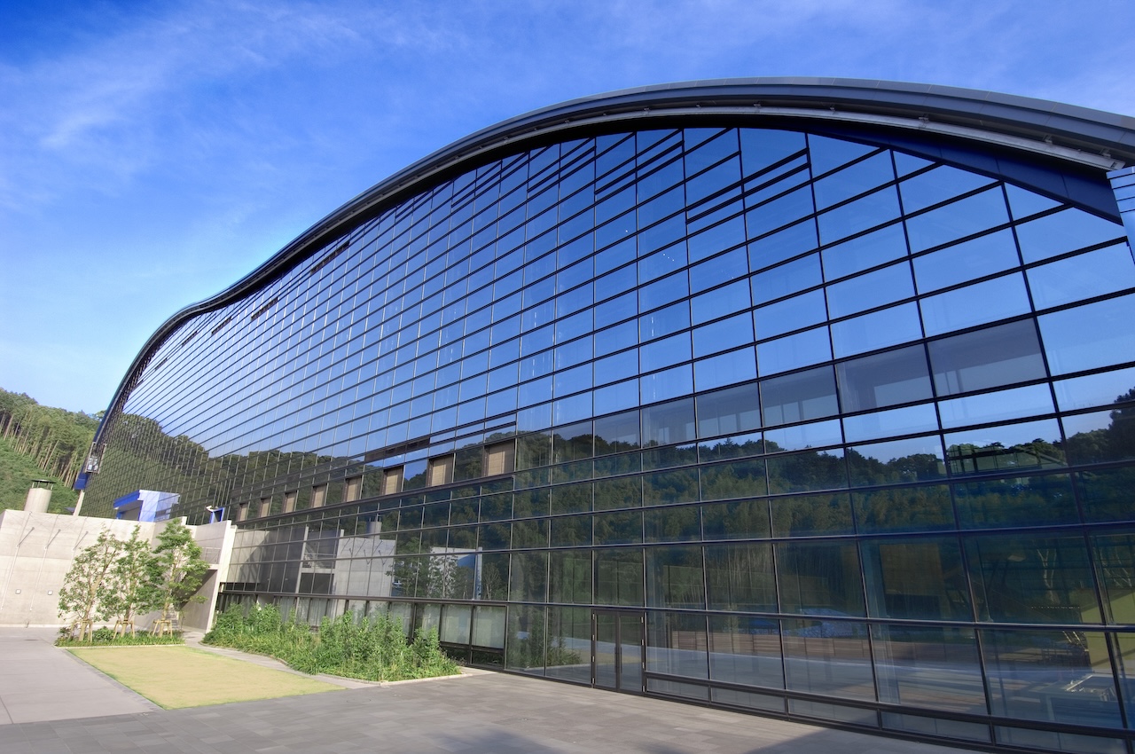 ゆるやかな曲線を描いた屋根には最新の屋上緑化技術が用いられ、梅の木など60種類以上の木々や草が植えられています。伝統的な建築の手法と最先端技術、さらには現代アートをかけあわせたような斬新なデザインは見る者を惹きつけます。