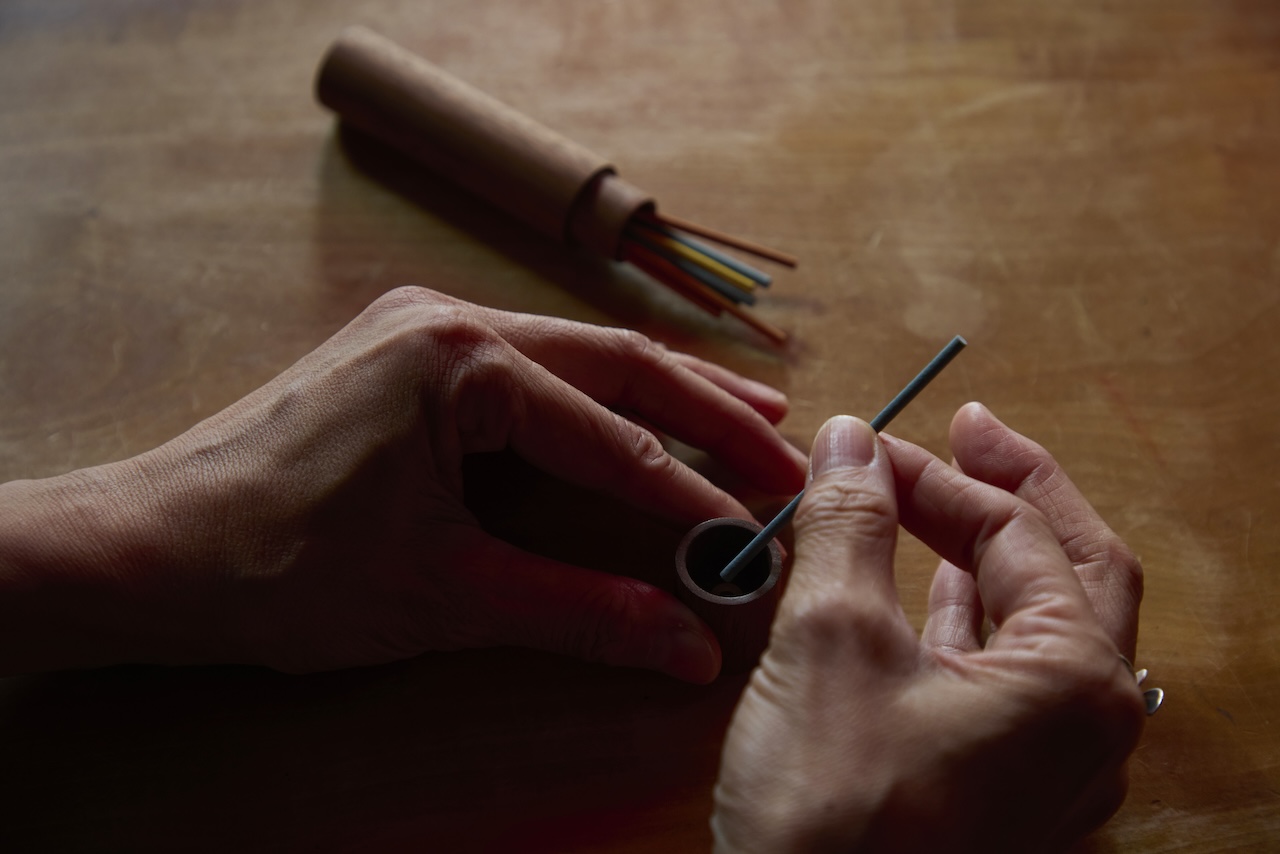 円城さんが、松栄堂の13代目、畑元章さん(当時は専務、現在は社長)をインタビューしたときのこと。元章さんは立命館大学を卒業後、家業に入社。何年ものあいだ、手作業でお香を作る現場で経験を積み、家に帰るなりバタンと寝てしまうほど大変な肉体労働だったそうです。インタビューの際、円城さんが元章さんに、lisnへの愛を伝えたところ、「lisnの事業は父の肝入りでした。とても喜ぶと思います」という言葉をもらったそうです。