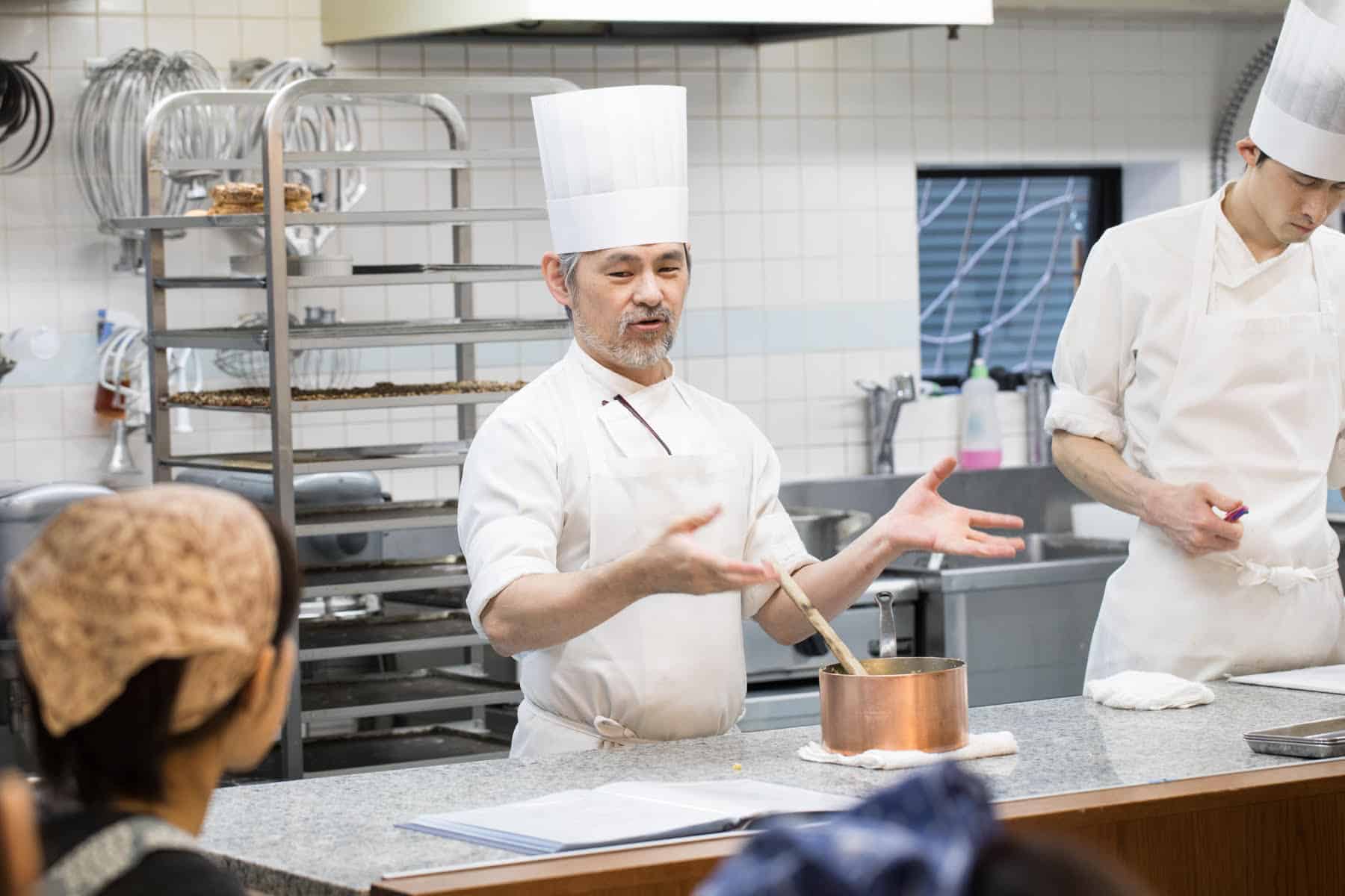 一方、20年間続けている「パティスリー モンプリュ」でのお菓子教室も、林さんの大切な活動の一つ。3時間みっちり林さん自身が指導し、生徒たちも実際に手を動かして学ぶスタイル。菓子作りの技術だけでなく、歴史や文化的背景も学べる貴重な機会。1クラス16名で全6クラスは常に満席です。