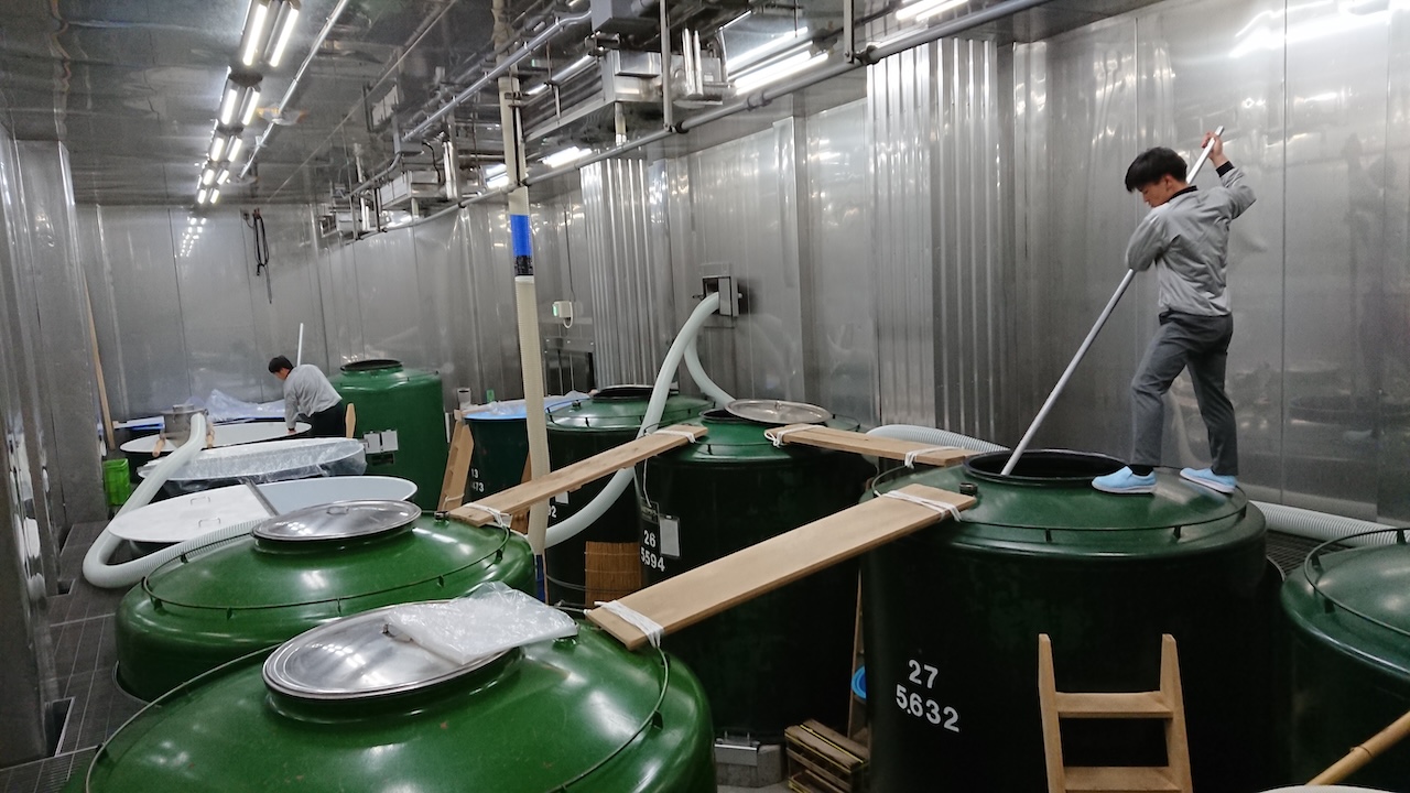 冷蔵酒蔵内の温度は一定に保たれる。2027年秋には新たな冷蔵仕込み蔵になるのだとか。